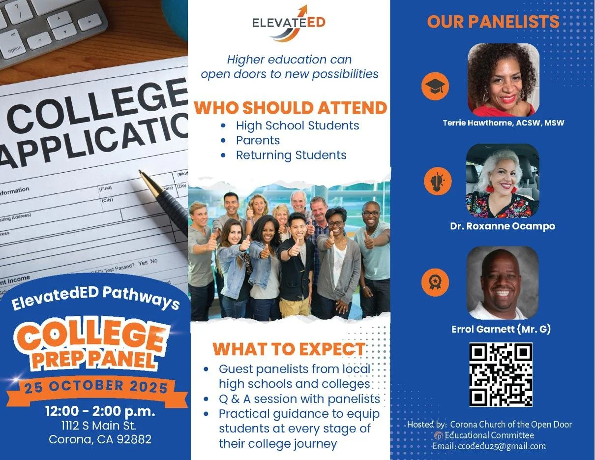 Higher education opens doors to new opportunities. CCOD’s Educational Committee is helping students and families step confidently into that next chapter. Join us for the ElevatedED Pathways College Prep Panel, an engaging afternoon designed to equip, inspire, and guide students at every stage of their educational journey.