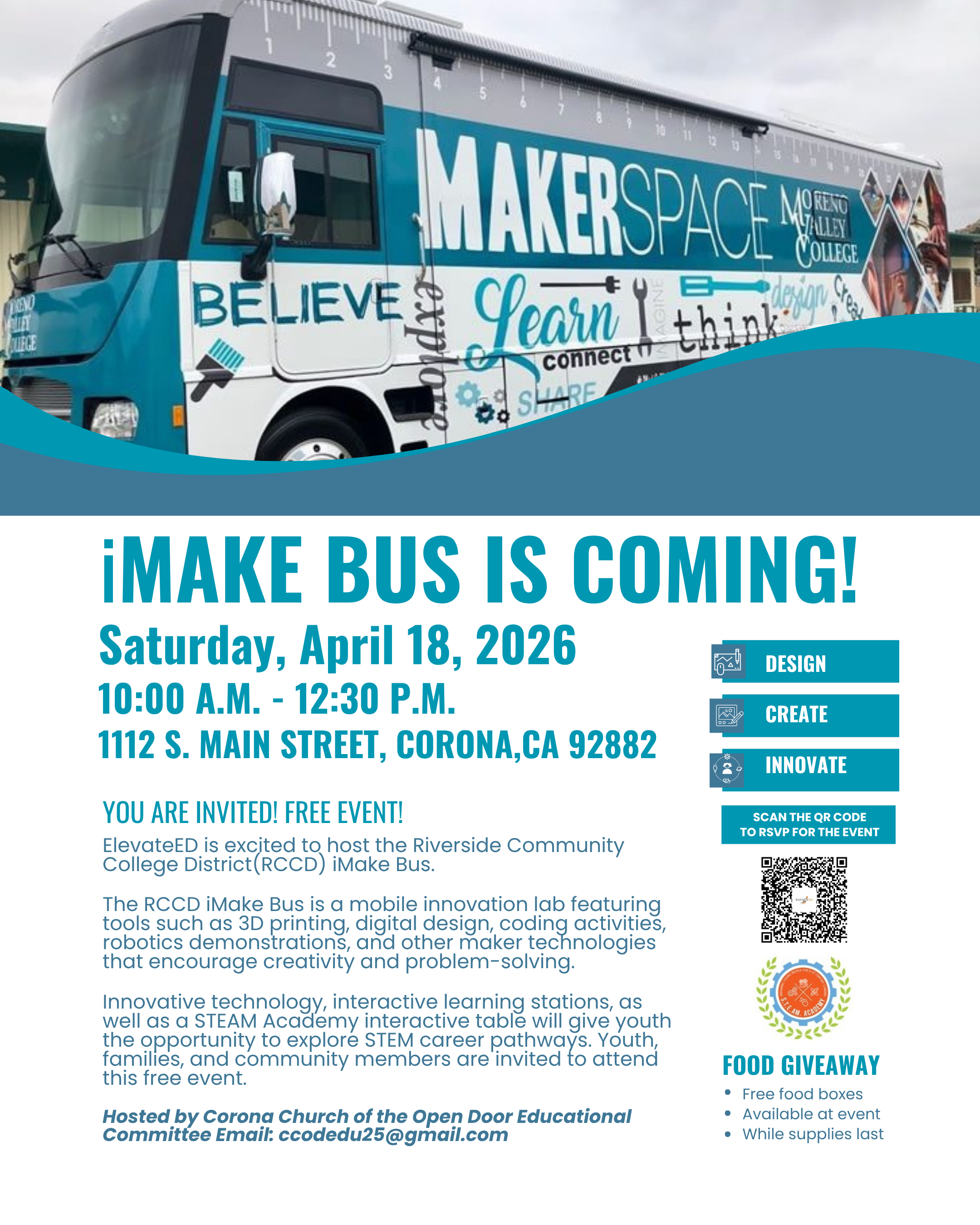 The iMake Bus is coming to Corona! Join us for a fun, hands-on experience where creativity meets technology.
