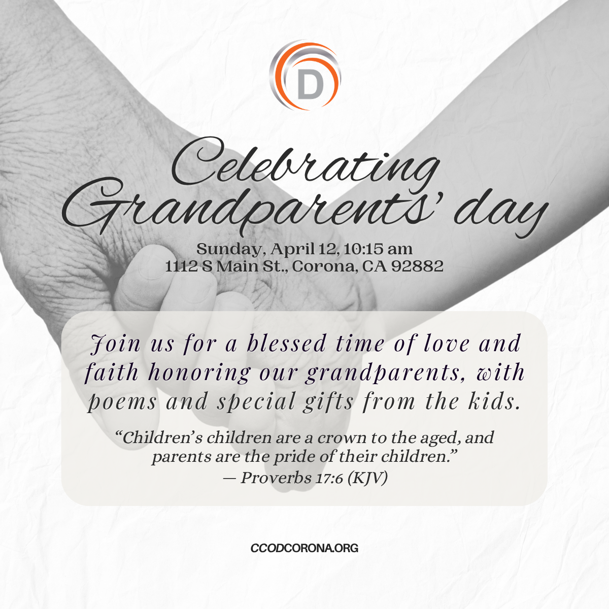 This Sunday, April 12 at 10:15 AM as we honor the love, wisdom, and legacy of our grandparents. It will be a special time filled with heartfelt poems and gifts from the children, showing just how much they are cherished.